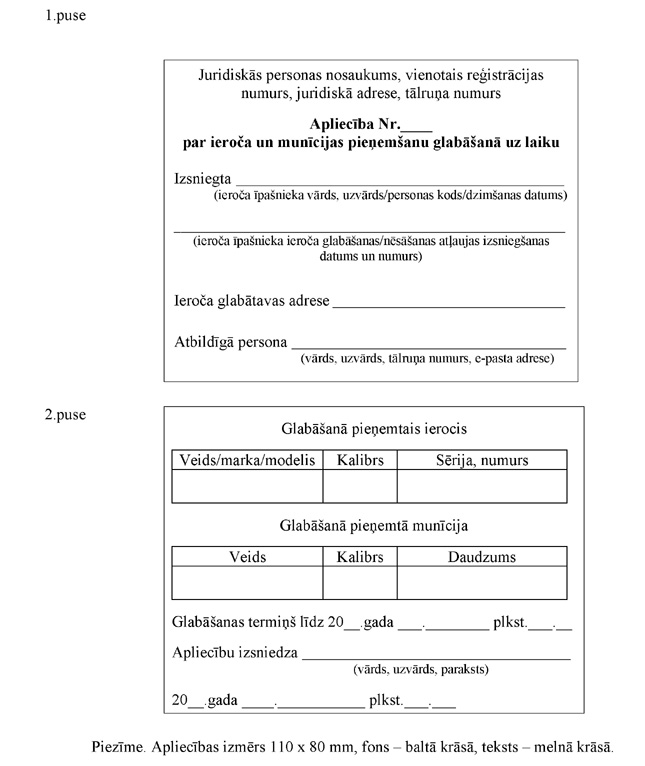 Apliecība par ieroča un munīcijas pieņemšanu glabāšanā uz laiku
