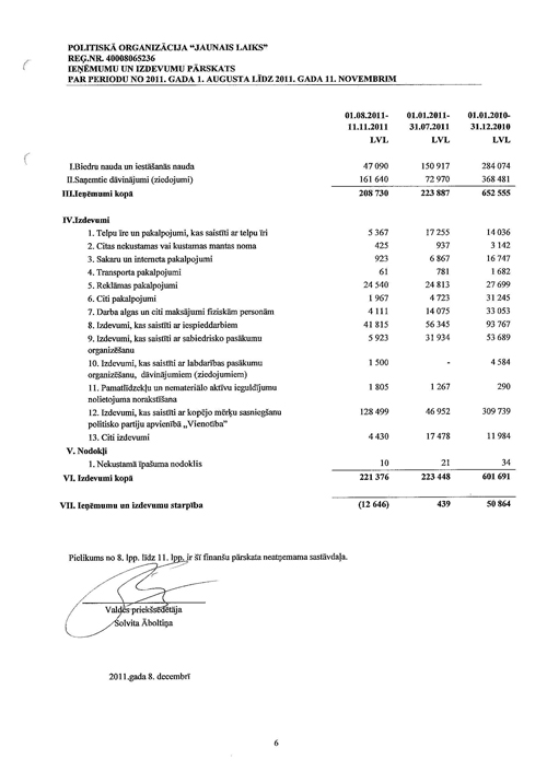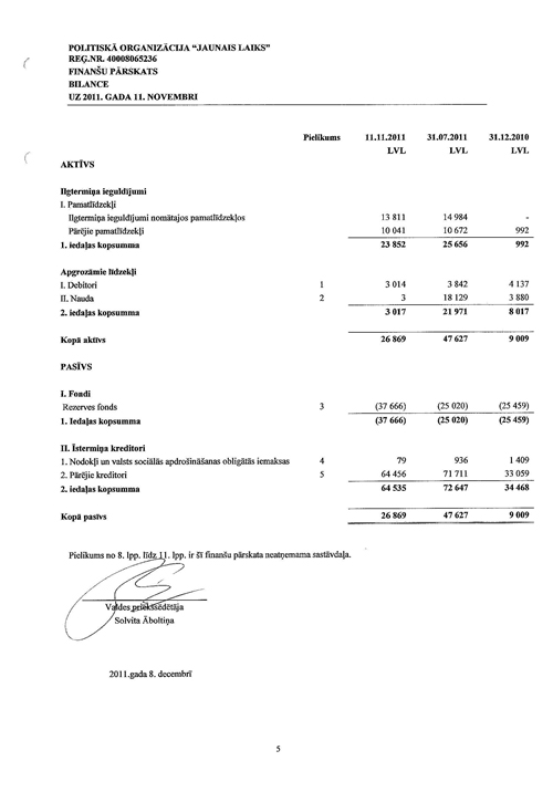 Darbības pārskati. Publicēts oficiālajā laikrakstā "Latvijas Vēstnesis", 29.12.2011., Nr. 204 https://www.vestnesis.lv/ta/id/242070