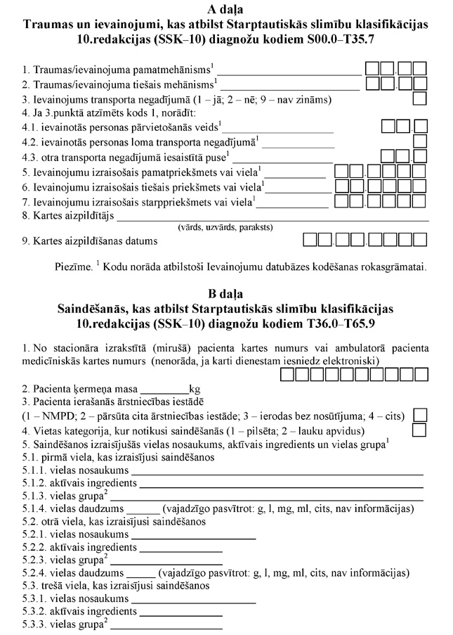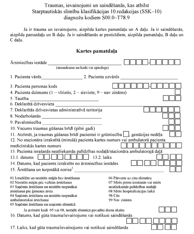 Traumu, ievainojumu un saindēšanās gadījumu uzskaites karte