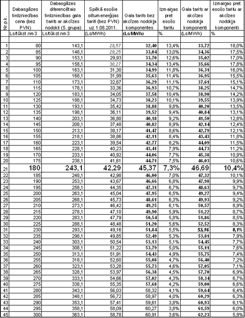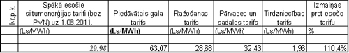 Piedāvātais tarifs varētu stāties spēkā ar 2012. gada 1. martu. Tarifa izmaiņas ir saistītas ar mainīgo un pastāvīgo izmaksu izmaiņām, pārdotās siltumenerģijas apjoma izmaiņām, katlu efektivitātes palielināšanos, zudumu samazinājumu, dabasgāzes akcīzes nodokļa piemērošanu un tarifa pārapstiprināšanu atbilstoši spēkā esošajai tarifu metodikai, izdalot atsevišķi siltumenerģijas ražošanas tarifu, siltumenerģijas sadales un pārvades tarifu un siltumenerģijas tirdzniecības tarifu.