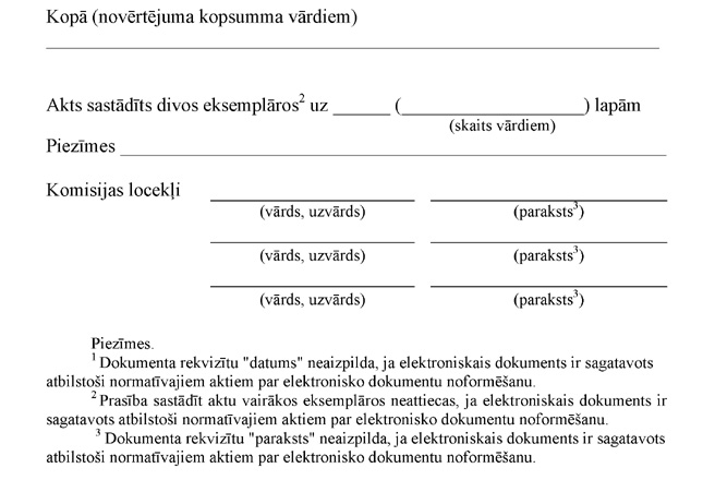 20. Lietiskā pierādījuma novērtēšanas komisija novērtējumu ieraksta lietisko pierādījumu, arestētās mantas vai mantas, kurai atcelts arests, aprakstes un novērtējuma aktā. Aktu sagatavo divos eksemplāros (nav attiecināms uz elektroniska dokumenta veidā noformētiem novērtējumiem), to paraksta komisijas locekļi. Aktu nesagatavo, ja ir saņemts sertificēta vērtētāja novērtējums. Sertificētais vērtētājs lietiskā pierādījuma novērtējumu sagatavo divos eksemplāros (nav attiecināms uz elektroniska dokumenta veidā noformētiem novērtējumiem) un apliecina ar parakstu. Vienu lietisko pierādījumu, arestētās mantas vai mantas, kurai atcelts arests, aprakstes un novērtējuma aktu vai sertificēta vērtētāja novērtējumu nosūta procesa virzītājam, bet otru glabā aģentūrā.