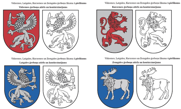 Likumprojekta 7.pants noteic, ka šis likums neskar jau citos likumos un Ministru kabineta noteikumos ietverto regulējumu par Vidzemes, Latgales, Kurzemes un Zemgales ģerboņu izmantošanu. Ja tas nav paredzēts, šādu regulējumu ietver normatīvajos aktos, bet, ja pastāvīga regulējuma noteikšana nav lietderīga, tiesības lietot ģerboni nosaka Valsts prezidenta rīkojums.