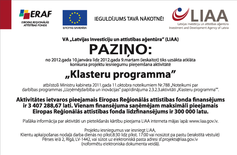 Pretendenti konkursa nolikumu var saņemt bez maksas Rīgā, Turgeņeva ielā 14, 533. kabinetā. Konkursa piedāvājumu atvēršana notiks 2012. gada 1. februārī plkst. 10.30 Rīgā, Gogoļa ielā 3, 301. kabinetā.