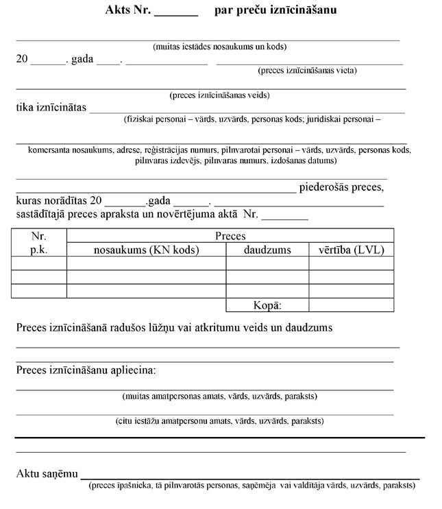 13. Pēc preču iznīcināšanas muitas amatpersona aizpilda aktu par preces iznīcināšanu (2.pielikums).
