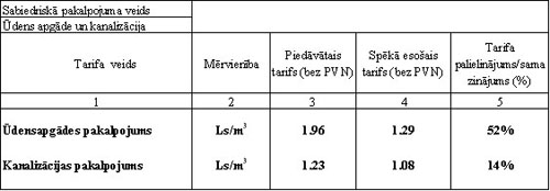 Piedāvātais tarifs varētu stāties spēkā ar 01.04.2012. Tarifa izmaiņas saistītas ar pamatlīdzekļu apjoma un līdz ar to arī nolietojuma pieaugumu un pārējo izdevumu (t.i. pieskaitāmo izmaksu) pieaugumu ūdenssaimniecības pakalpojumu izmaksās.