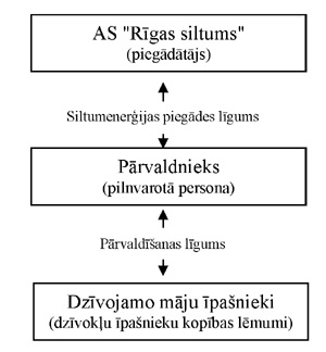 1.attēls. Līgumiskās attiecības starp dzīvojamās mājas īpašniekiem, pārvaldnieku un RS