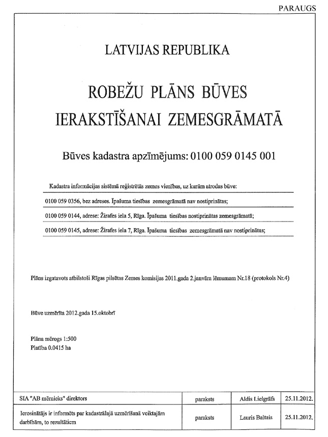 1.2. nosaukums ''Robežu plāns būves ierakstīšanai zemesgrāmatā'';