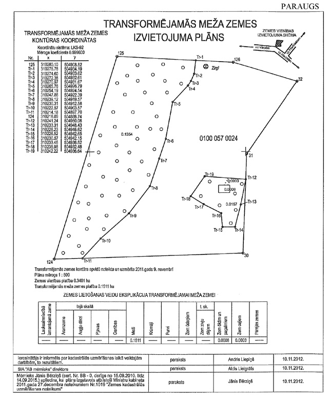 1.2. transformējamās meža zemes kontūras punktus, kurus numurē pieaugošā secībā un pieraksta šādi "Tr-1";