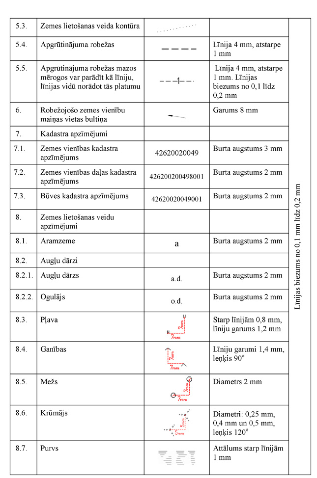 1.5. zemes lietošanas veidu apzīmējumus.
