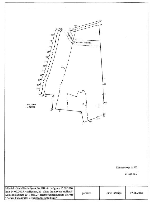 14. Situācijas plāna un apgrūtinājumu plāna mērogam jāsakrīt ar zemes robežu plāna mērogu.