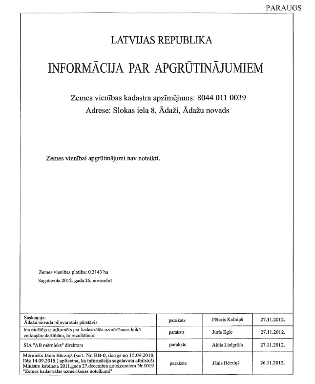 1.6.1. būves īpašnieks ar parakstu apliecina, ka ir informēts par zemes kadastrālās uzmērīšanas darbībām un rezultātiem;