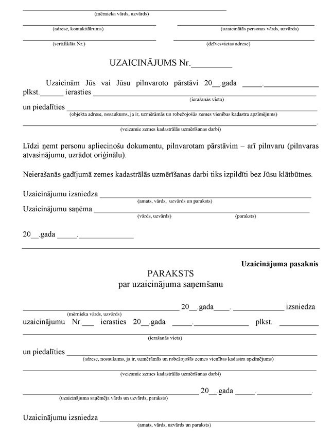 3.1. ierosinātājs ar parakstu apliecina, ka ir informēts par zemes kadastrālās uzmērīšanas darbībām un rezultātiem;