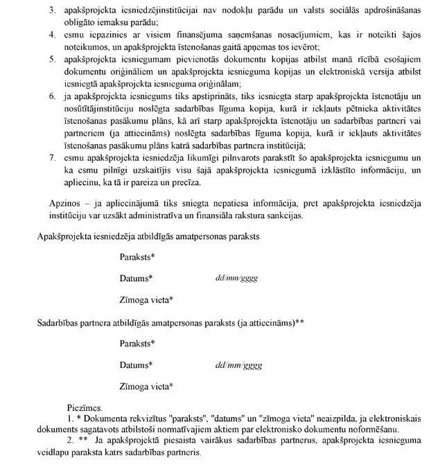 Apakšprojekta iesnieguma veidlapu parakstījusi apakšprojekta iesniedzēja atbildīgā amatpersona |
