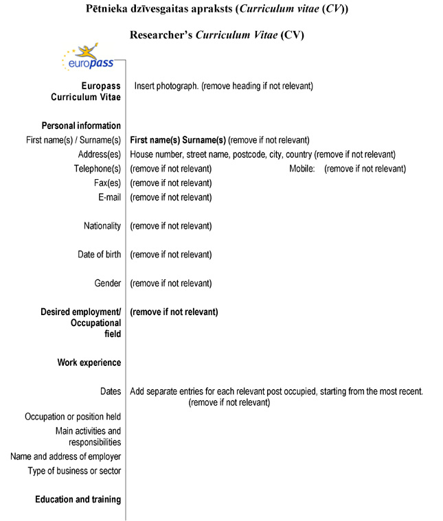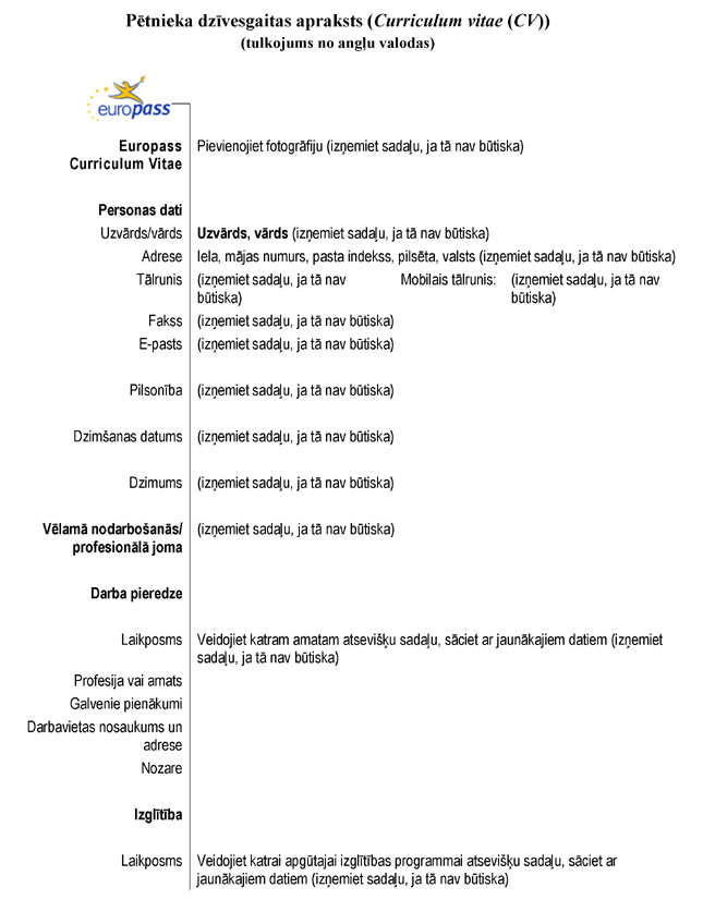 29.3. pētnieka dzīvesgaitas aprakstu (Curriculum vitae (CV) angļu valodā) (4.pielikums).