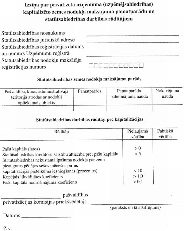 28.2. izziņu par privatizētā uzņēmuma (uzņēmējsabiedrības) kapitalizēto zemes nodokļa maksājuma pamatparādu un statūtsabiedrības darbības rādītājiem (2.pielikums);