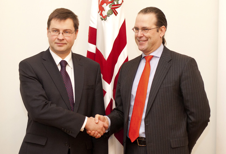 1.februārī Rīgā viesojās Zviedrijas finanšu ministrs Anderss Borgs. Vizītes laikā viņš tikās ar Ministru prezidentu Valdi Dombrovski (attēlā), Latvijas Bankas prezidentu Ilmāru Rimšēviču, kā arī finanšu ministru Andri Vilku. Zviedrijas finanšu ministrs Rīgas Ekonomikas augstskolā nolasīja lekciju “Ekonomiskās krīzes risinājumi Eiropā” Foto: Toms Norde, VK |