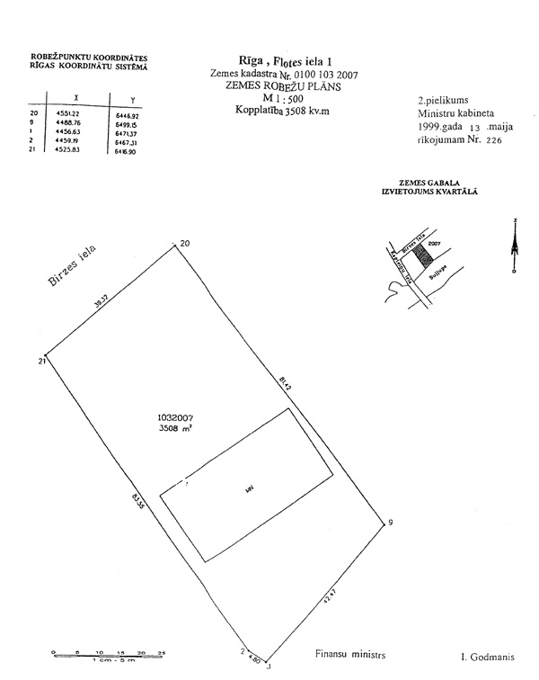 1.2. zemesgabalu 3508 m2 platībā (zemes kadastra Nr. 0100 103 2007), garāžas ēku (liters Nr.135, a) un būves (liters Nr.I, III, IV) Rīgā, Flotes ielā 1. Zemesgabala robežas norādītas 2.pielikumā;