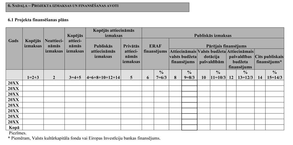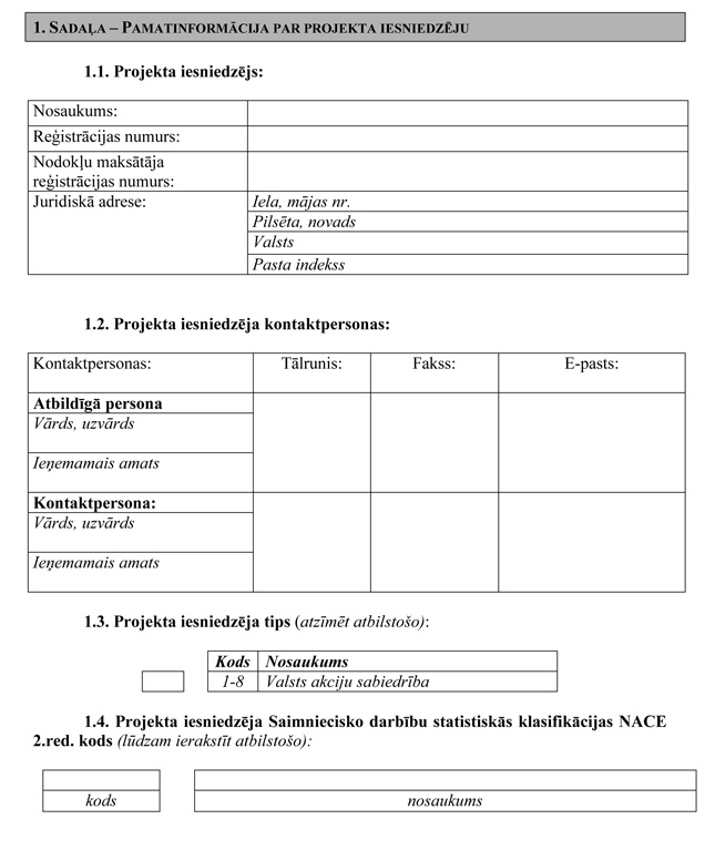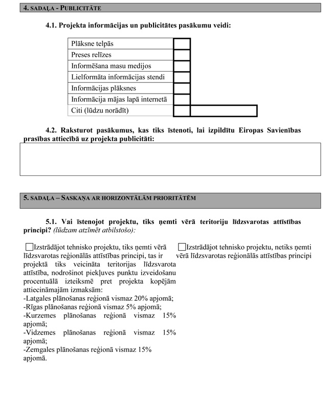 V. Projekta iesnieguma veidlapa un pielikumi