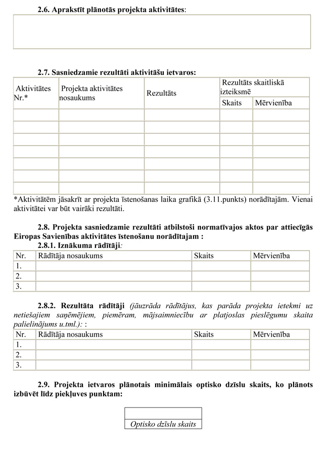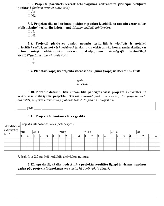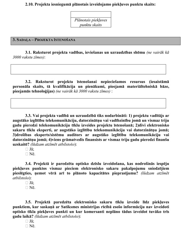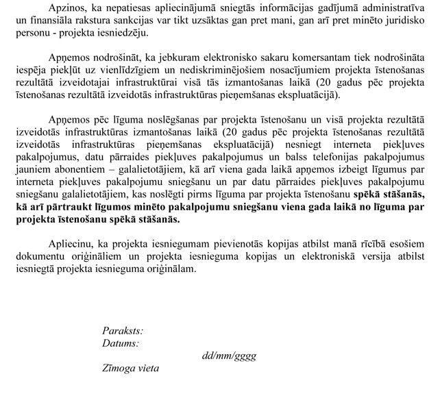 | 19. | Projekta iesniegumā paredzēts ievērot tehnoloģiskās neitralitātes principu piekļuves punktos | N |