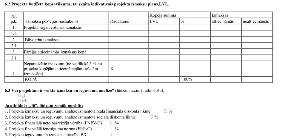 | 21. | Projektam ir veikta izmaksu un ieguvumu analīze | N |