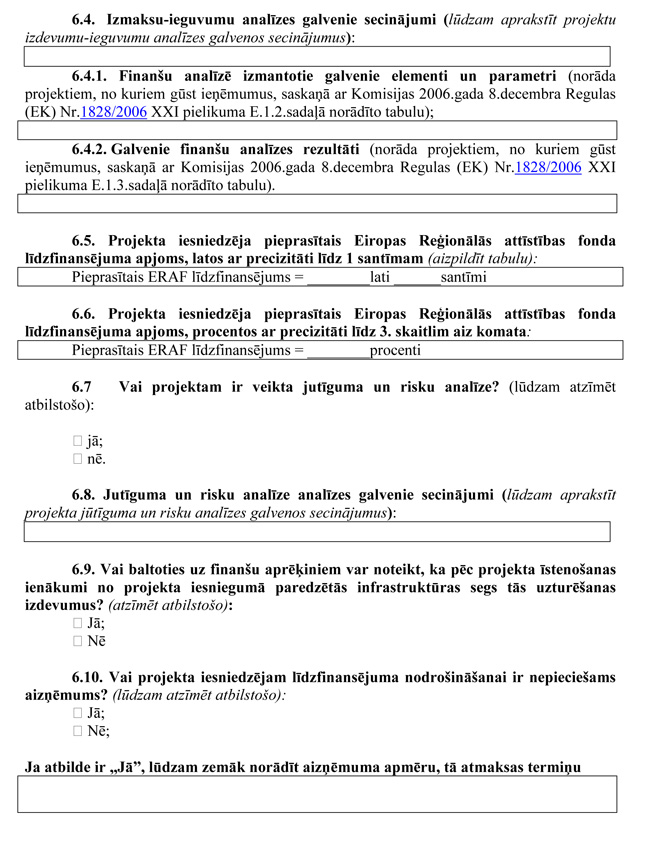 | 28. | Projektam ir veikta jutīguma un risku analīze | N |