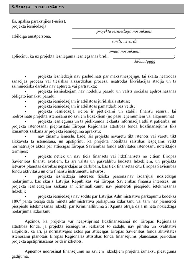 | 30. | Tiks nodrošināta projekta rezultātu ilgtspēja vismaz septiņus gadus pēc projekta īstenošanas | N |