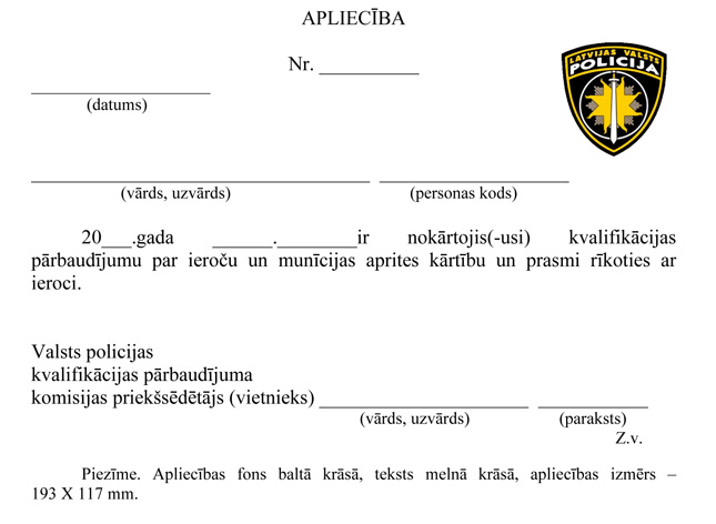 Noteikumi par ieroču un munīcijas aprites un prasmju rīkoties ar ieroci kvalifikācijas pārbaudījuma pieņemšanas kārtību