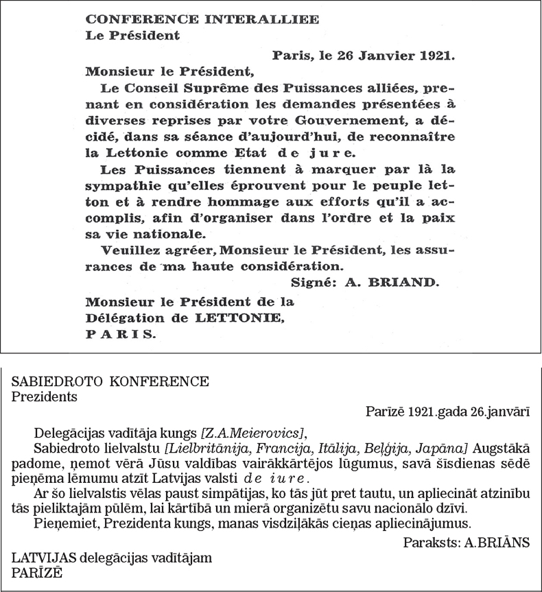 Londonā Z.Meierovicu pieņēma ārlietu ministrs Dž.Kērzons (1859–1925), kas izteica šaubas par Itālijas un Francijas labvēlīgu nostāju Baltijas valstu atzīšanas jautājumā. Z.Meierovics kopā ar Latvijas sūtni britu zemē Georgu Bisenieku (1885–1941) no Londonas atkal izbrauca uz Parīzi, kur 22.janvārī vajadzēja sākties izšķirošajam raundam: Lielbritānijas, Francijas, Itālijas, Japānas un Beļģijas pārstāvju konferencei. Ilgi gaidītajā vēsturiskajā dokumentā bija teikts: "Sabiedroto lielvalstu Augstākā padome, ņemot vērā Jūsu valdības vairākkārtējos lūgumus, savā šīsdienas sēdē pieņēma lēmumu atzīt Latvijas valsti de iure.