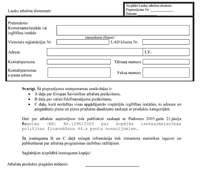 Iesniegums atbalsta saņemšanai