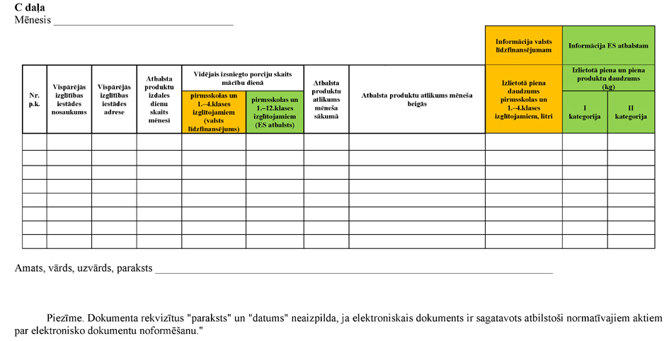 Pārskats par piegādāto piena produktu izlietojumu