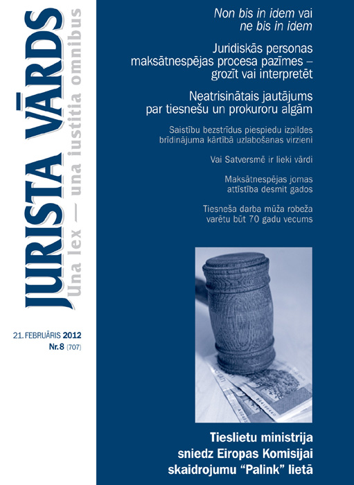 SIA “Palink” maksātnespējas procesa pasludināšana rosinājusi atsākt diskusiju par Maksātnespējas likuma iespējamām nepilnībām. Šā notikuma kontekstā rodas jautājums, vai Maksātnespējas likuma 57.panta noteikumi ir pietiekami efektīvi, lai varētu izpildīt maksātnespējas tiesiskā regulējuma galveno uzdevumu – aizsargāt darbotiesspējīgos komersantus un laikus likvidēt maksātnespējīgos. Jāņem vērā, ka efektīvs maksātnespējas tiesiskais regulējums ir stabilas un konkurētspējīgas komercdarbības vides priekšnoteikums, tādēļ būtu lietderīgi saskatīt esošās nepilnības un tās novērst. Raksta mērķis ir izvērtēt Maksātnespējas likuma 57.panta otrajā un trešajā punktā noteikto maksātnespējas procesa pazīmju atbilstību mūsdienu tendencēm un starptautiskās pieredzes ieteikumiem, tādējādi rosinot plašāku diskusiju par juridiskās personas maksātnespējas procesa pazīmju grozīšanas un pilnveidošanas nepieciešamību. Tā kā likuma grozījumu sagatavošanai nepieciešams zināms laiks, autori sniegs arī savu skatījumu par esošās Maksātnespējas likuma 57.panta redakcijas interpretēšanu.