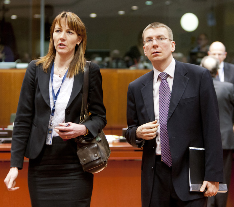 Ārlietu ministrs Edgars Rinkēvičs un Latvijas ārkārtējā un pilnvarotā vēstniece Eiropas Savienībā Ilze Juhansone 27.februārī Briselē piedalījās Eiropas Savienības Ārlietu padomē, kur ārlietu ministri diskutēja par situāciju Sīrijā, Ēģiptē, Dienvidkaukāzā, Tuvo Austrumu miera procesā, pievēršot uzmanību Izraēlas un Palestīniešu pašpārvaldes miera sarunu turpināšanai. Tāpat padomē tika apspriesti jautājumi saistībā ar situāciju Serbijā un Kosovā, kā arī Baltkrievijā Foto: Thierry Monasse, europolitiquephoto.eu |