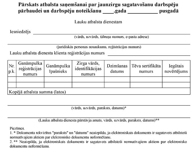 1. * Dokumenta rekvizītus "paraksts" un "datums" neaizpilda, ja elektroniskais dokuments ir sagatavots atbilstoši normatīvajiem aktiem par elektronisko dokumentu noformēšanu.