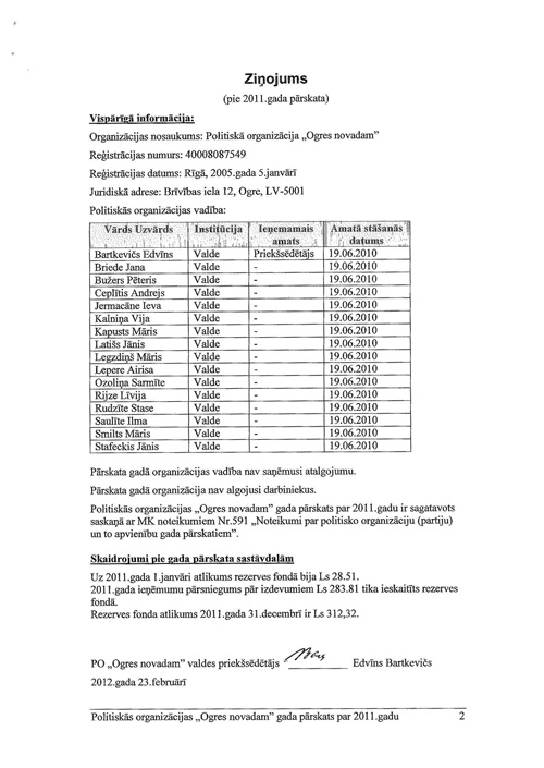 Darbības pārskati. Publicēts oficiālajā laikrakstā "Latvijas Vēstnesis", 9.03.2012., Nr. 40 https://www.vestnesis.lv/ta/id/245108