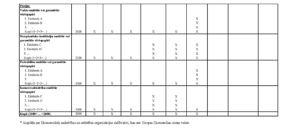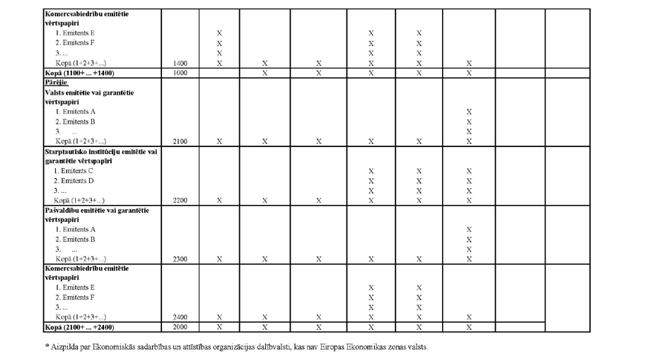"17.5. pārskata 6. sadaļas "Atvasinātie finanšu instrumenti" 6. ailē norāda ieguldījumus viena emitenta emitētos atvasinātajos finanšu instrumentos (tālāk tekstā – riska darījumu apmērs). Riska darījumu apmēru aprēķina, summējot pozitīvās ar attiecīgo darījumu partneri noslēgto atvasināto finanšu instrumentu darījumu uzskaites jeb tirgus (mark-to-market) vērtības;".