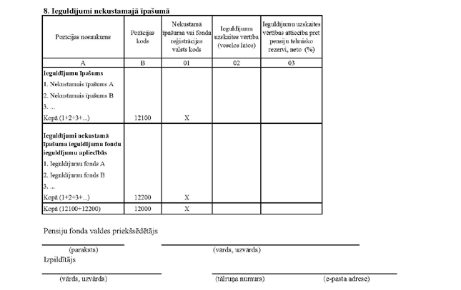 4.4."Pārskatu par pensiju fonda pašu līdzekļiem un maksātspējas prasību izpildi" (8. pielikums).