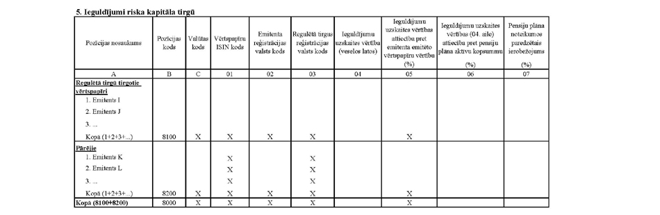 5.4. "Pārskatu par pensiju plāna atklātajām ārvalstu valūtu pozīcijām" (12. pielikums);