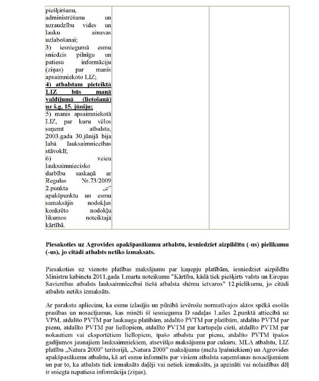 Grozījumi Ministru kabineta 2011.gada 1.marta noteikumos Nr.173 "Kārtība, kādā tiek piešķirts valsts un Eiropas Savienības atbalsts lauksaimniecībai tiešā atbalsta shēmu ietvaros"