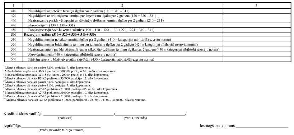 15. "Obligāto rezervju prasību aprēķinā" summas norāda veselos latos.