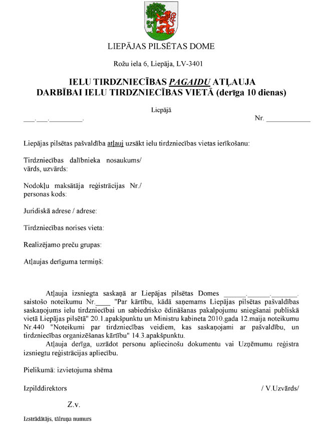 pilsētas pašvaldības saskaņojums ielu tirdzniecībai un sabiedriskās ēdināšanas