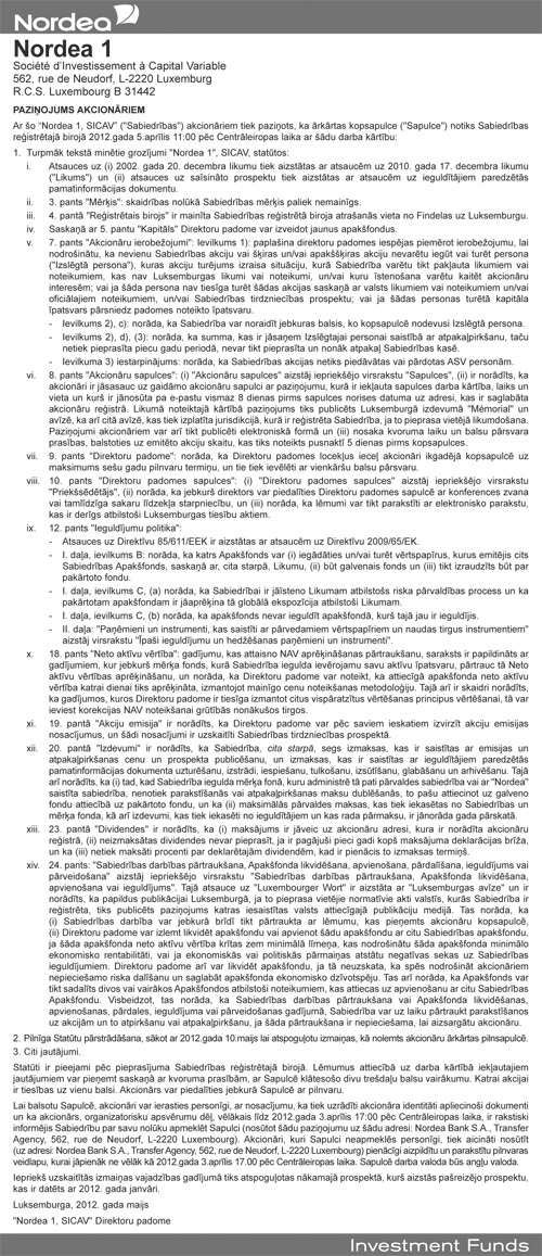 Paziņojumi akcionāriem, dalībniekiem, biedriem