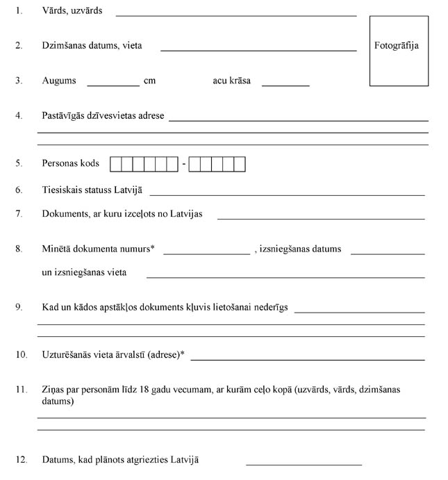 8. Atgriešanās apliecību aizpilda latviešu valodā un angļu, franču, krievu vai vācu valodā.