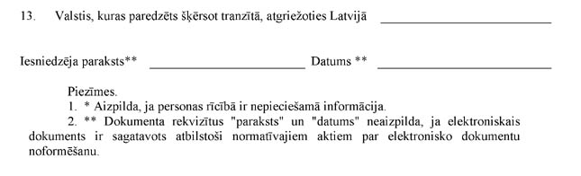 3.1. aizpildītu un parakstītu iesniegumu atgriešanās apliecības izsniegšanai (2.pielikums) (turpmāk – iesniegums);