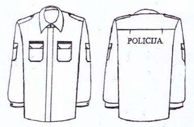 "34. Valsts policijai – tumši zilas vai baltas krāsas trikotāžas polo krekls ar īsām iešūtām piedurknēm, vienrindas triju pogu (diametrs – 14 mm) aizdari pa aizdarsloksni, divām uzšūtām krūšu kabatām ar vienu pogu (diametrs – 14 mm) katrā pārlokā. Uz plecu vīlēm – uzpleči ar pārvalkiem, vienu pogu un dienesta pakāpes zīmēm. Virs labās kabatas – uzšuve ar uzvārdu. Krekla mugurdaļā plecu līmenī gaismu atstarojošs uzraksts "POLICIJA". Uz kreisās piedurknes – iestādes emblēma, uz labās piedurknes var būt struktūrvienības emblēma. (30.attēls)".