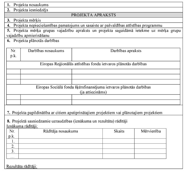 "8.12. ja projekta iesniegumā ir iekļautas Ministru kabineta 2010.gada 14.septembra noteikumu Nr.843 "Noteikumi par darbības programmas "Infrastruktūra un pakalpojumi" papildinājuma 3.6.2.1.aktivitāti "Atbalsts novadu pašvaldību kompleksai attīstībai"" (turpmāk – Ministru kabineta noteikumi) 15.2.3., 15.2.4. un 15.2.4.1 apakšpunktā minētās izmaksas, apliecinu, ka ir ievēroti normatīvie akti par komercdarbības atbalsta kontroli, ievērotas šo noteikumu 28.1 vai 28.2 punktā minētās prasības līgumam, kas nosaka sabiedriskā pakalpojuma sniegšanas pienākumu, un attiecīgā sabiedriskā pakalpojuma sniedzējam – pašvaldības kapitālsabiedrībai, pašvaldības kontrolē esošai komercsabiedrībai vai citam sabiedriskā pakalpojuma sniedzējam – piešķirtais atbalsts par sabiedrisko pakalpojumu sniegšanu atlīdzības maksājumu veidā ir atbrīvots no paziņošanas Eiropas Komisijai. Apliecinu, ka tiks ievērotas Ministru kabineta noteikumu 28.1 punktā minētās prasības līgumam, kas nosaka sabiedriskā pakalpojuma sniegšanas pienākumu, bet, ja līgumam, kas nosaka sabiedriskā pakalpojuma sniegšanas pienākumu, ir piemērotas Ministru kabineta noteikumu 28.2 punktā minētās prasības, atlīdzības maksājumi sabiedriskā pakalpojuma sniedzējam vidēji gadā nepārsniegs 15 miljonus EUR par vispārējas tautsaimnieciskas nozīmes sabiedrisko pakalpojumu sniegšanu jomās, kas nav transports vai transporta infrastruktūra, kā arī periods, kurā sabiedriskā pakalpojuma sniedzējam uzticēts sniegt pakalpojumu, nepārsniedz 10 gadus."