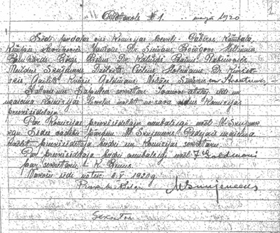 | Satversmes sapulces Satversmes komisijas Protokols Nr.1 Arhīva faksimils |