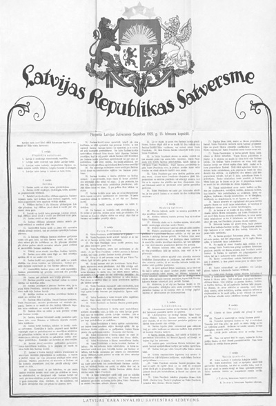 | Latvijas Republikas Satversmes pirmais atsevišķais izdevums (arhīva reprodukcija) |