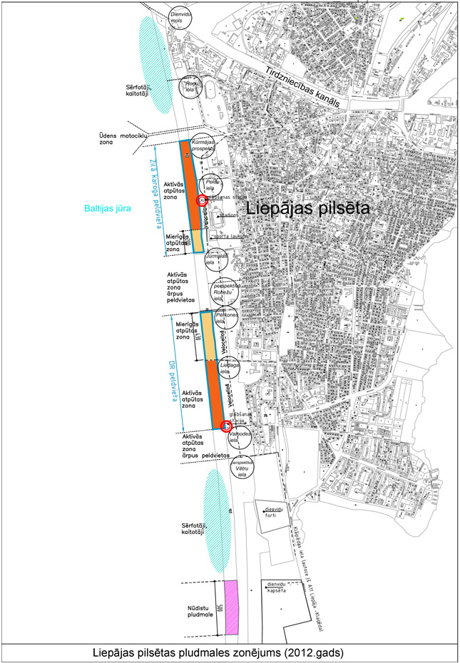 Noteikumi nosaka pludmales zonējumu – peldvietu pie stadiona un dienvidrietumu peldvietu, aktīvās atpūtas zonu uz ūdens, kā arī nūdistu pludmali. Noteikumi nosaka arī sabiedriskās kārtības noteikumus pludmalē un peldvietās, atbildību par noteikumu neievērošanu. |