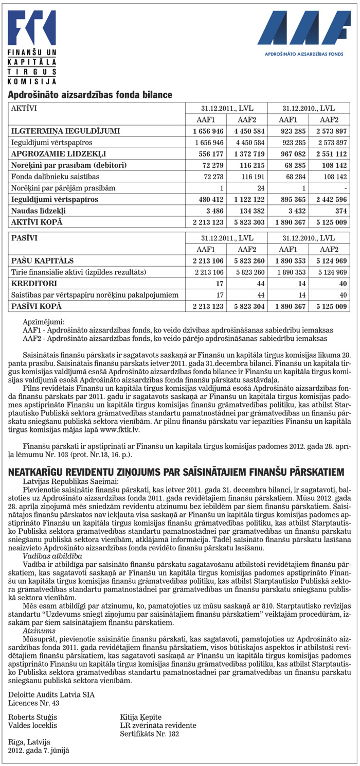Darbības pārskati. Publicēts oficiālajā laikrakstā "Latvijas Vēstnesis", 19.06.2012., Nr. 95 https://www.vestnesis.lv/ta/id/249281