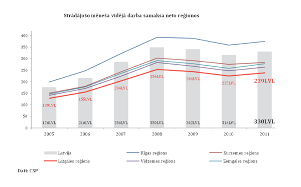 2011.gada decembra beigās CSP publicēja aktuālos IKP datus reģionu iedalījumā. IKP tiek plaši izmantots kā pamata rādītājs ekonomiskās attīstības un labklājības raksturošanai. Lai gan dati ir ar 2 gadu nobīdi, tie joprojām parāda, ka Latgales reģions pēc attīstības līmeņa savā attīstībā ievērojami atpaliek no pārējiem reģioniem un pēdējo 10 gadu laikā situācija nav uzlabojusies.